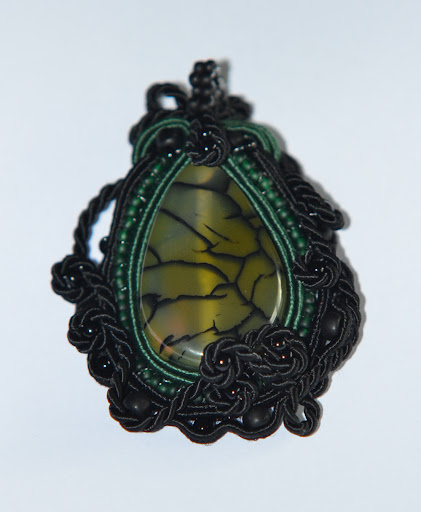 w centrum agat smoczy, do tego koraliki TOHO, skręcany sznureczek, no i oczywiście sutasz ;)