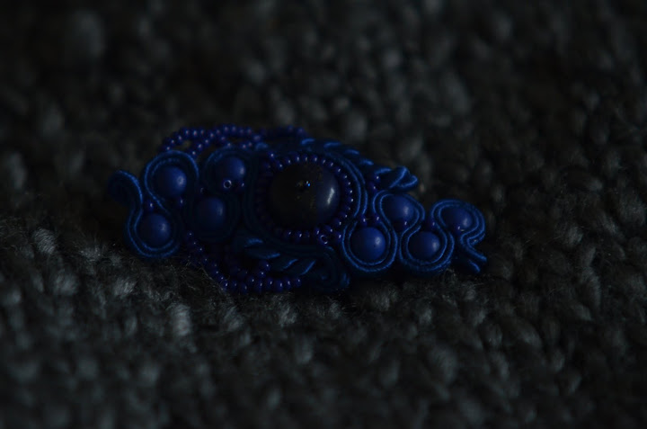 Dziś chciałabym pokazać broszkę jaką stworzyłam na wyzwanie w Diabelskim Młynie. Wykonana jest z sutaszu w jednym z moich ulubionych ostatnio kolorów, koralików Jablonexu, w centrum mój ukochany kamień lapis-lazuli. W tle ostatni wytwór- fragment niesamowicie ciepłego sweterka z fantazyjnej włóczki merynosowej o zmiennej grubości, który też pewnie niedługo doczeka się swojej odsłony na blogu. Nie będę zatem dłużej przynudzać i prezentuję broszkę: